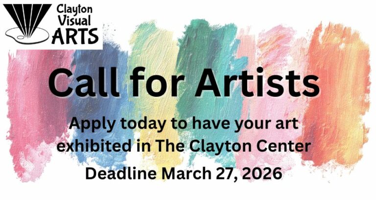 “Capturing Clayton 2026” will feature the talents of local photographers (of all levels) as they snap images of the beautiful town of Clayton and its surrounding areas. Accepted entries will be displayed in The Clayton Center for the month of May. Deadline: Friday April 24